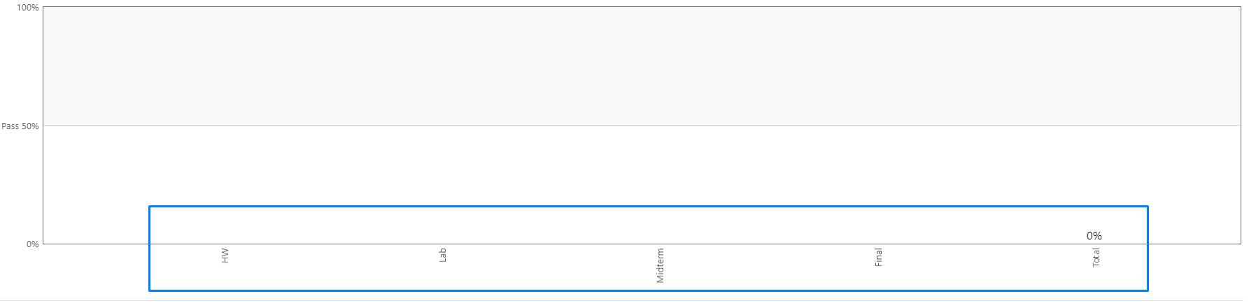 The abbreviations of the assignment types are on the X-axis. If you configure, for example, 1 subsection linked to the assignment type âHomeworkâ with the abbreviation HW, the graph will show one bar for that assignment type. Graded problems in units are not broken out in the chart; the score from each problem in the subsection is added to that vertical bar.